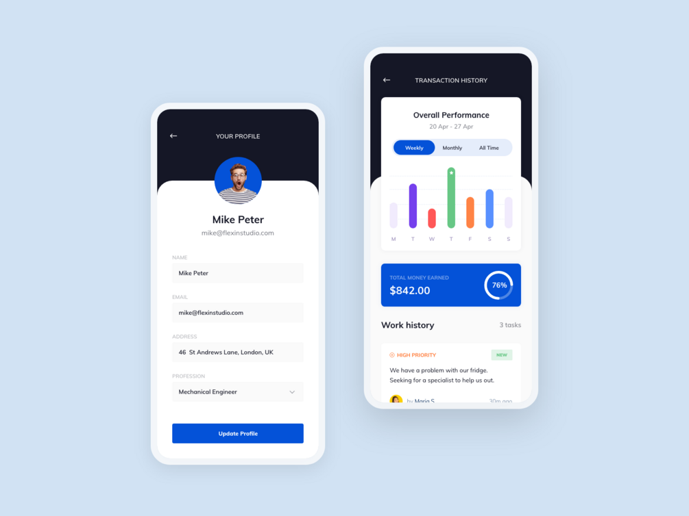 Freelancer Tasks - Free Mobile UI Kit