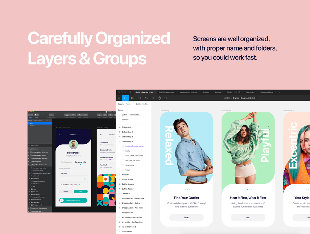 Designed with Figma, Sketch & Adobe XD, with over 30 unique screens, Outfitr UI Kit is a valuable resource for any designer that wants to impress his clients or boost his portfolio.