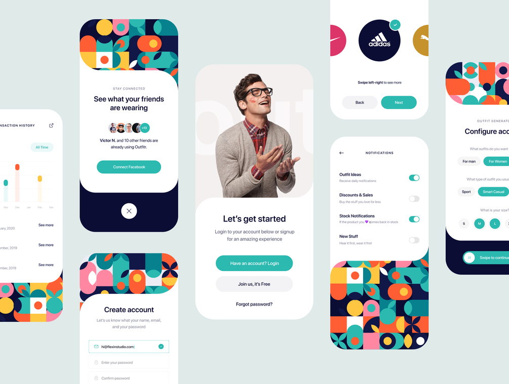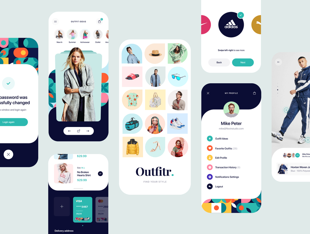 Outfitr is a modern and trending UI Kit designed not only for fashion apps, but for any app that wants to stand out from the crowd. With a good flow, you can easily browse through the outfits, apply filters, add to favorites or swipe to love an outfit, this colorful UI kit will sure fit any modern project.